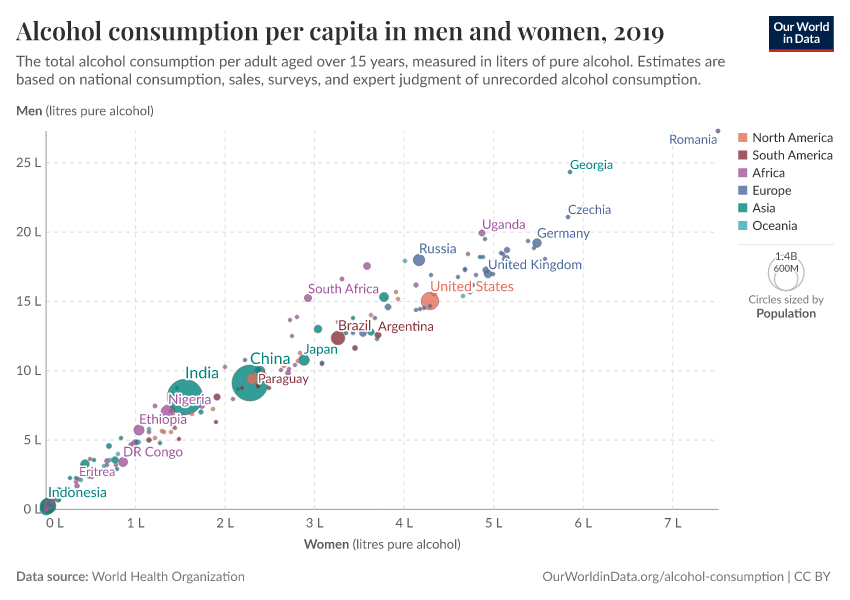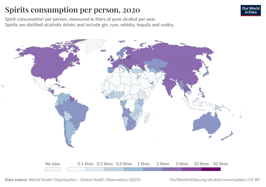 Hannah Ritchie and Max Roser (2022) - “Alcohol Consumption” Published online at OurWorldinData.org. Retrieved from: 'https://bespoke-viz-urb.owid.pages.dev/alcohol-consumption' [Online Resource]BibTeX citation