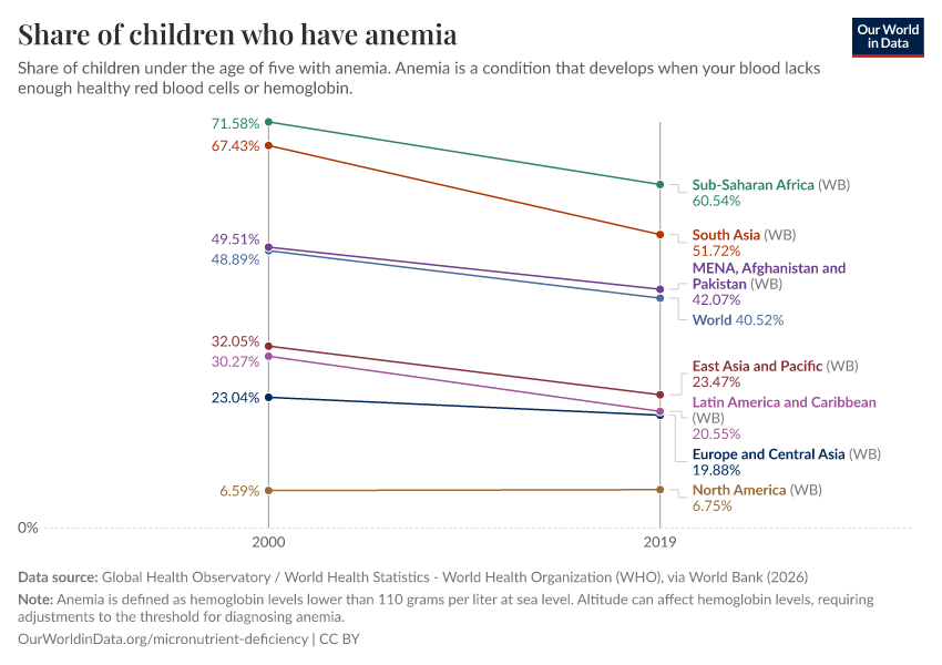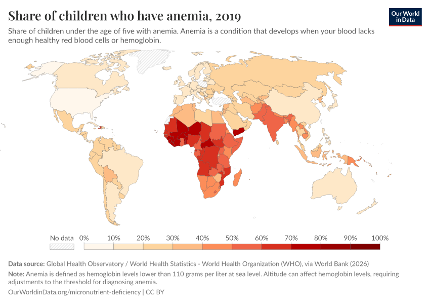 Hannah Ritchie (2024) - “Billions of people suffer from anemia, but there are cheap ways to reduce this” Published online at OurWorldinData.org. Retrieved from: 'https://bespoke-viz-urb.owid.pages.dev:8789/20260304-094028/billions-people-suffer-anemia-cheap-ways-reduce.html' [Online Resource] (archived on March 4, 2026).BibTeX citation
