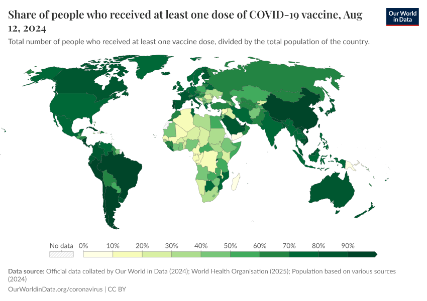 Edouard Mathieu, Hannah Ritchie, Lucas Rodés-Guirao, Cameron Appel, Daniel Gavrilov, Charlie Giattino, Joe Hasell, Bobbie Macdonald, Saloni Dattani, Diana Beltekian, Esteban Ortiz-Ospina, and Max Roser (2020) - “Coronavirus (COVID-19) Vaccinations” Published online at OurWorldinData.org. Retrieved from: 'https://bespoke-viz-urb.owid.pages.dev:8789/20260331-072833/covid-vaccinations.html' [Online Resource] (archived on March 31, 2026).BibTeX citation