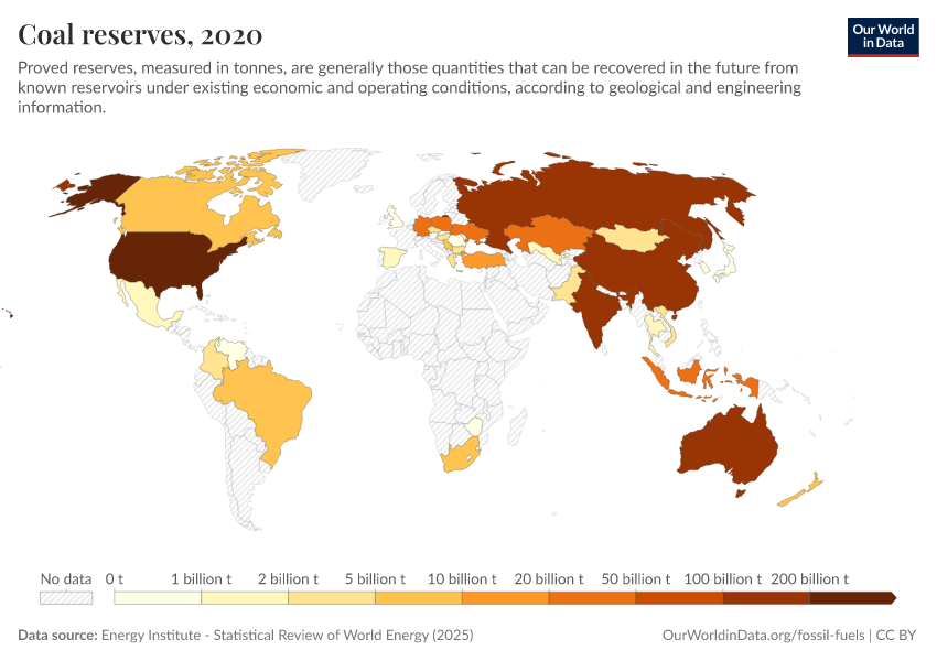 In the interactive chart, we see proven coal reserves across the world.