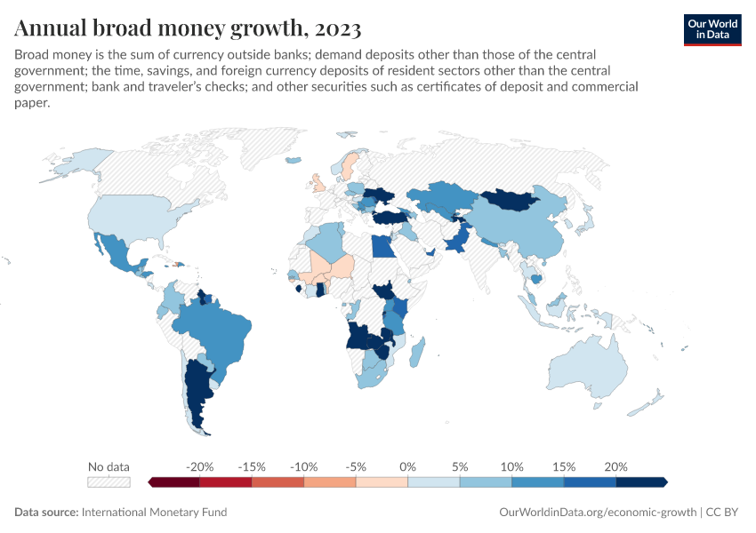 “Data Page: Annual broad money growth”. Our World in Data (2026). Data adapted from International Monetary Fund. Retrieved from https://bespoke-viz-urb.owid.pages.dev:8789/20260304-094028/grapher/annual-broad-money-growth.html [online resource] (archived on March 4, 2026).How to cite this data