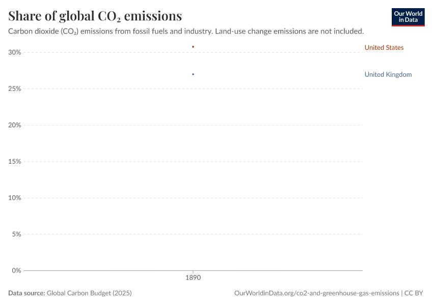 “Data Page: Share of global CO₂ emissions”, part of the following publication: Hannah Ritchie, Pablo Rosado, and Max Roser (2023) - “CO₂ and Greenhouse Gas Emissions”. Data adapted from Global Carbon Project. Retrieved from https://bespoke-viz-urb.owid.pages.dev:8789/20260304-094028/grapher/annual-share-of-co2-emissions.html [online resource] (archived on March 4, 2026).