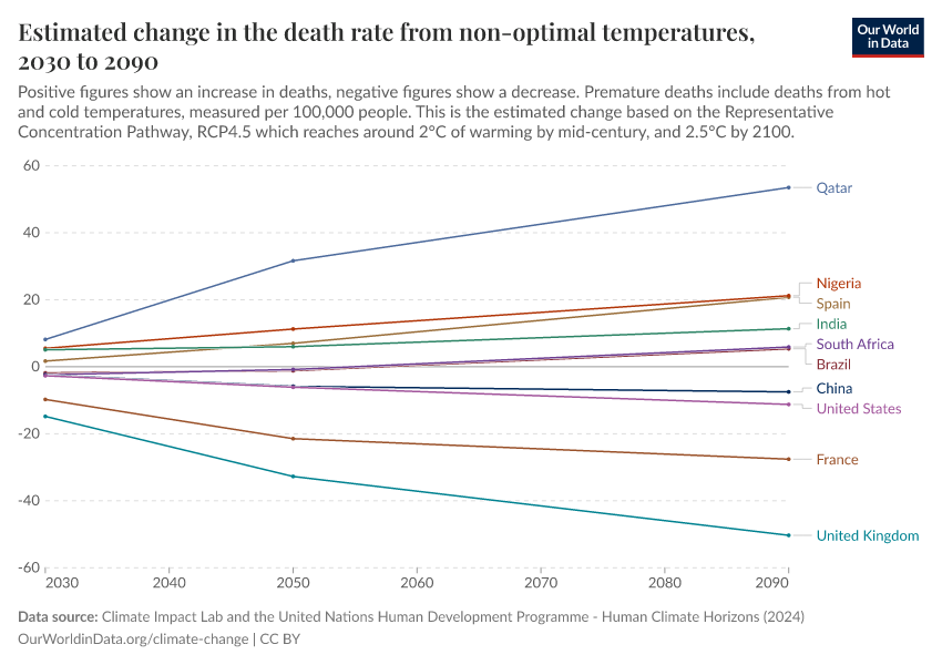 “Data Page: Estimated change in the death rate from non-optimal temperatures”. Our World in Data (2026). Data adapted from Climate Impact Lab and the United Nations Human Development Programme. Retrieved from https://bespoke-viz-urb.owid.pages.dev:8789/20260304-094028/grapher/change-heat-death-rate.html [online resource] (archived on March 4, 2026).How to cite this data