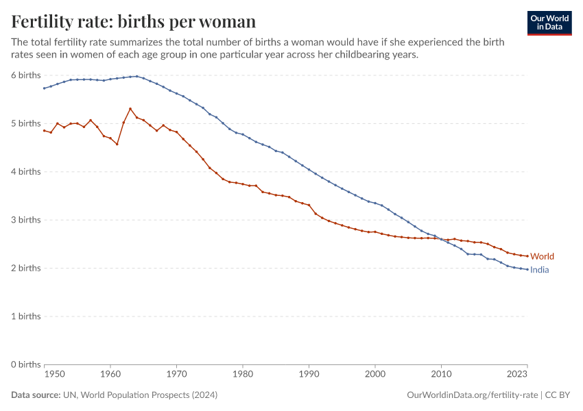 “Data Page: Fertility rate, total”. Our World in Data (2026). Data adapted from United Nations. Retrieved from https://bespoke-viz-urb.owid.pages.dev:8789/20260326-115107/grapher/children-per-woman-un.html [online resource] (archived on March 26, 2026).How to cite this data