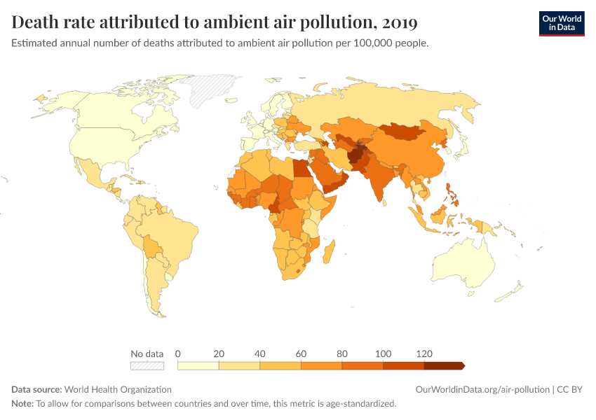 “Data Page: Death rate attributed to ambient air pollution”. Our World in Data (2026). Data adapted from World Health Organization. Retrieved from https://bespoke-viz-urb.owid.pages.dev:8789/20260304-094028/grapher/death-rate-ambient-air-pollution.html [online resource] (archived on March 4, 2026).How to cite this data
