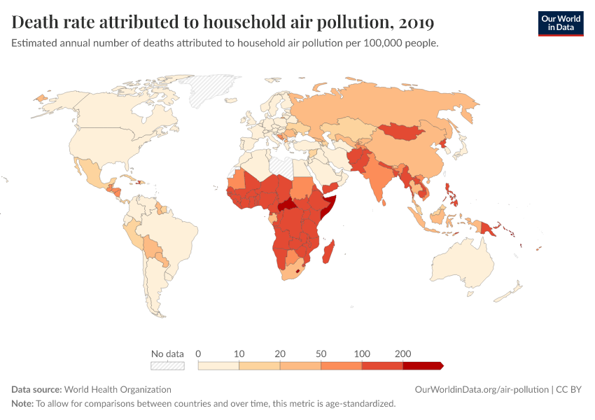 “Data Page: Death rate attributed to household air pollution”. Our World in Data (2026). Data adapted from World Health Organization. Retrieved from https://bespoke-viz-urb.owid.pages.dev:8789/20260304-094028/grapher/death-rate-household-air-pollution.html [online resource] (archived on March 4, 2026).How to cite this data