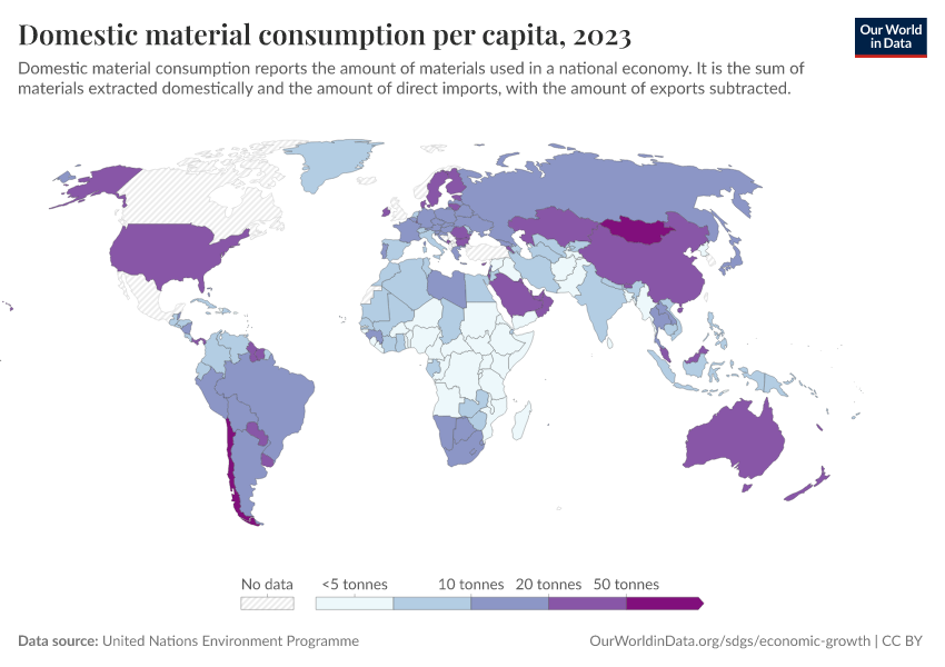 “Data Page: Domestic material consumption per capita”. Our World in Data (2026). Data adapted from United Nations Environment Programme. Retrieved from https://bespoke-viz-urb.owid.pages.dev:8789/20260304-094028/grapher/domestic-material-consumption-per-capita.html [online resource] (archived on March 4, 2026).How to cite this data