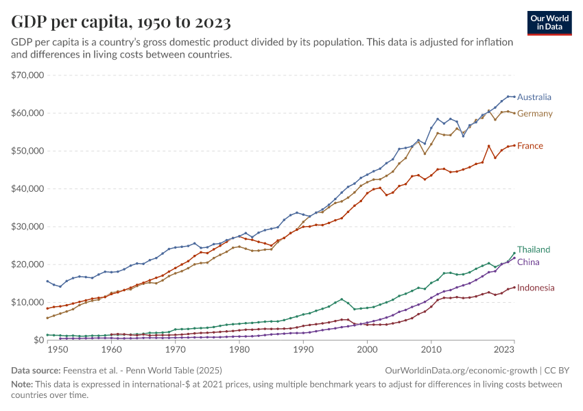 “Data Page: GDP per capita”, part of the following publication: Max Roser, Bertha Rohenkohl, Pablo Arriagada, Joe Hasell, Hannah Ritchie, and Esteban Ortiz-Ospina (2023) - “Economic Growth”. Data adapted from Feenstra et al.. Retrieved from https://bespoke-viz-urb.owid.pages.dev:8789/20260304-094028/grapher/gdp-per-capita-penn-world-table.html [online resource] (archived on March 4, 2026).How to cite this data