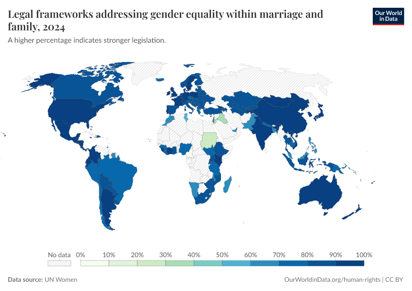 “Data Page: Legal frameworks addressing gender equality within marriage and family”. Our World in Data (2026). Data adapted from UN Women. Retrieved from https://bespoke-viz-urb.owid.pages.dev:8789/20260304-094028/grapher/legal-frameworks-gender-equality-within-marriage-and-family.html [online resource] (archived on March 4, 2026).How to cite this data