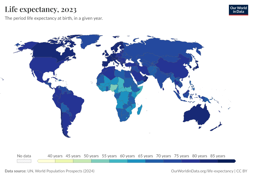 “Data Page: Life Expectancy, age 0”. Our World in Data (2026). Data adapted from United Nations. Retrieved from https://bespoke-viz-urb.owid.pages.dev:8789/20260326-115107/grapher/life-expectancy-unwpp.html [online resource] (archived on March 26, 2026).How to cite this data