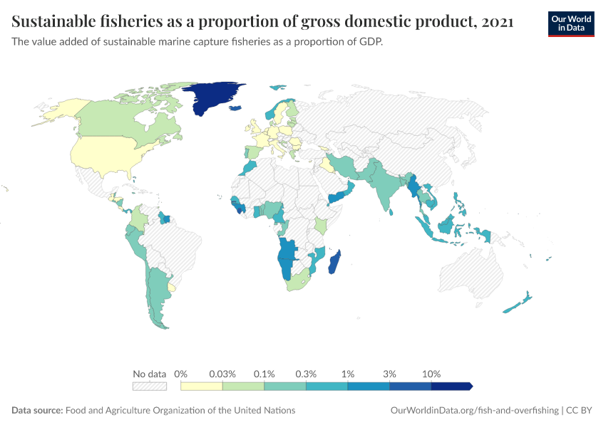 “Data Page: Sustainable fisheries as a proportion of gross domestic product”. Our World in Data (2026). Data adapted from Food and Agriculture Organization of the United Nations. Retrieved from https://bespoke-viz-urb.owid.pages.dev:8789/20260304-094028/grapher/sustainable-fisheries-as-a-proportion-of-gdp.html [online resource] (archived on March 4, 2026).How to cite this data