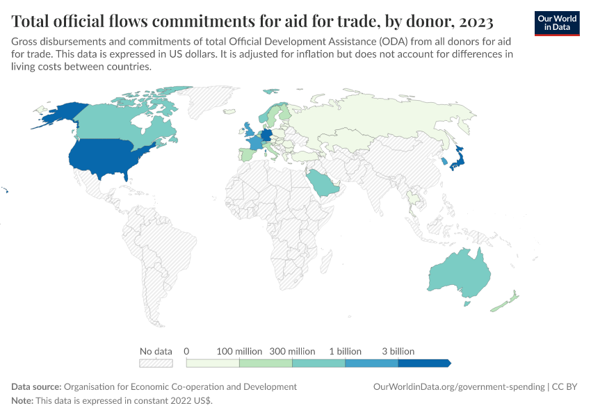 “Data Page: Total official flows commitments for aid for trade, by donor”. Our World in Data (2026). Data adapted from Organisation for Economic Co-operation and Development. Retrieved from https://bespoke-viz-urb.owid.pages.dev:8789/20260304-094028/grapher/total-oda-for-aid-for-trade-by-donor.html [online resource] (archived on March 4, 2026).How to cite this data