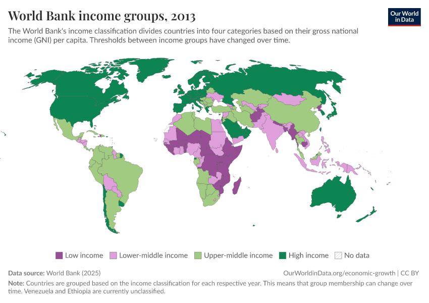 “Data Page: World Bank income groups”, part of the following publication: Max Roser, Bertha Rohenkohl, Pablo Arriagada, Joe Hasell, Hannah Ritchie, and Esteban Ortiz-Ospina (2023) - “Economic Growth”. Data adapted from World Bank. Retrieved from https://bespoke-viz-urb.owid.pages.dev:8789/20260304-094028/grapher/world-bank-income-groups.html [online resource] (archived on March 4, 2026).How to cite this data