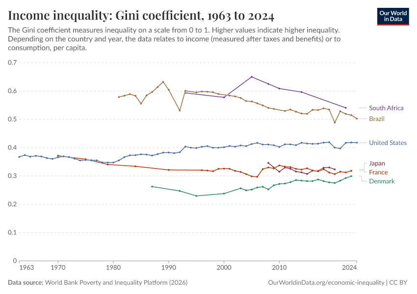 The range of incomes considered ‘middle’ and ‘high’ income countries according to the World Bank are very low relative to rich countries. High-income economies are those with a GNI per capita of $12,536 or more. The range of middle-income economies begins at a GNI per capita of $1,036. In this post I want to rely on countries like Denmark; higher income countries by any standard.