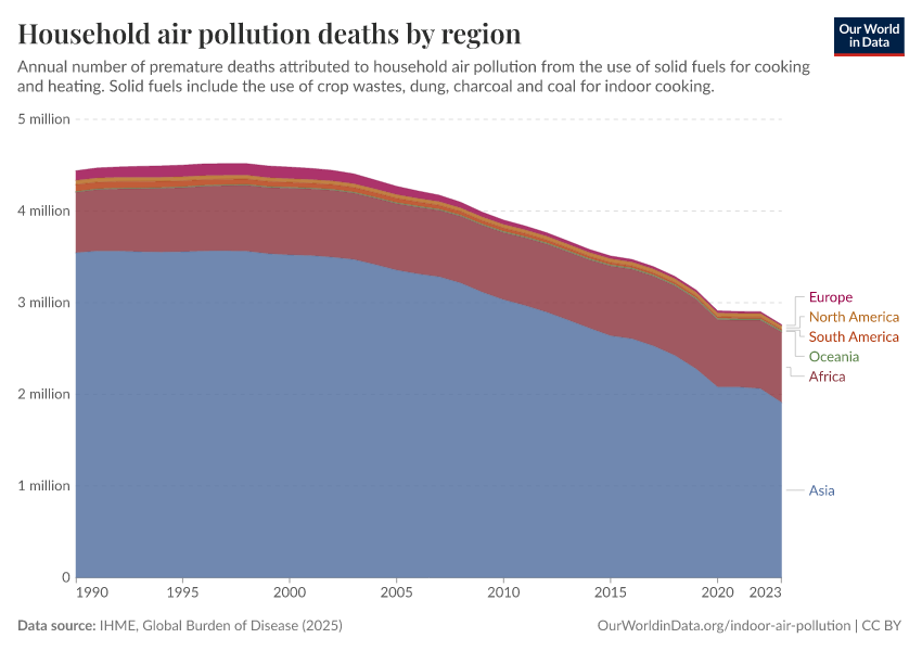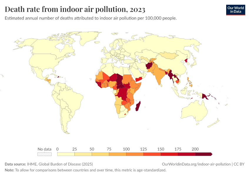 Hannah Ritchie and Max Roser (2022) - “Indoor Air Pollution” Published online at OurWorldinData.org. Retrieved from: 'https://bespoke-viz-urb.owid.pages.dev/indoor-air-pollution' [Online Resource]BibTeX citation