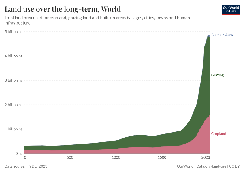 Hannah Ritchie and Max Roser (2019) - “Land Use” Published online at OurWorldinData.org. Retrieved from: 'https://bespoke-viz-urb.owid.pages.dev/land-use' [Online Resource]BibTeX citation