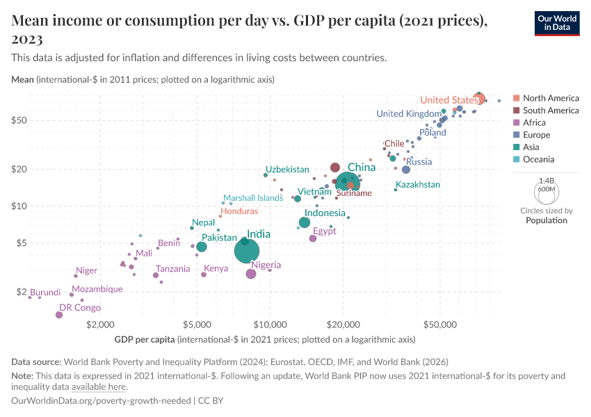 Max Roser (2021) - “The economies that are home to the poorest billions of people need to grow if we want global poverty to decline substantially” Published online at OurWorldinData.org. Retrieved from: 'https://bespoke-viz-urb.owid.pages.dev:8789/20260325-171315/poverty-growth-needed.html' [Online Resource] (archived on March 25, 2026).BibTeX citation