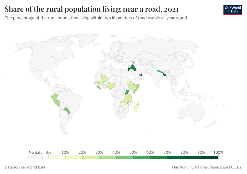 Definition of the SDG indicator: Indicator 9.1.1 is the “proportion of the rural population who live within 2 km of an all-season road” in the UN SDG framework.