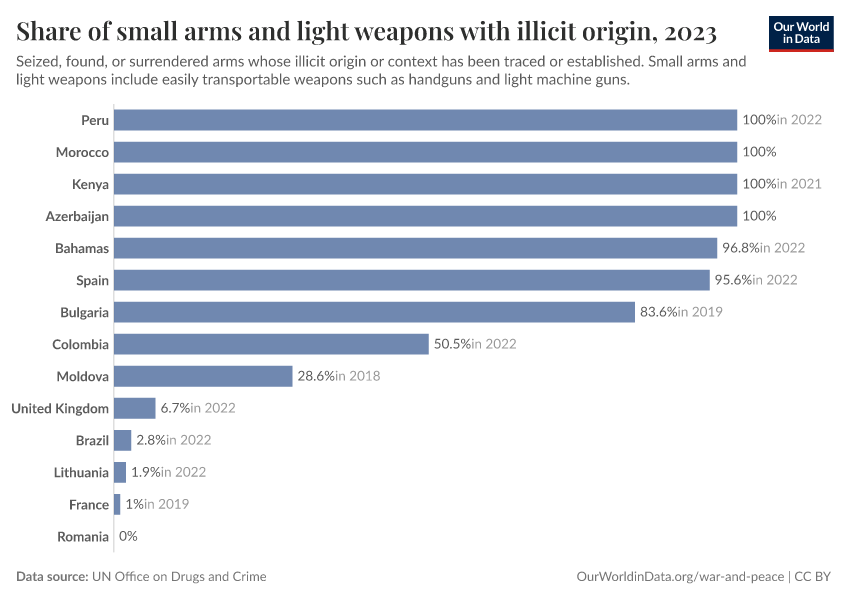 Definition of the SDG indicator: Indicator 16.4.2 is the “proportion of seized, found or surrendered arms whose illicit origin or context has been traced or established by a competent authority in line with international instruments” in the UN SDG framework.