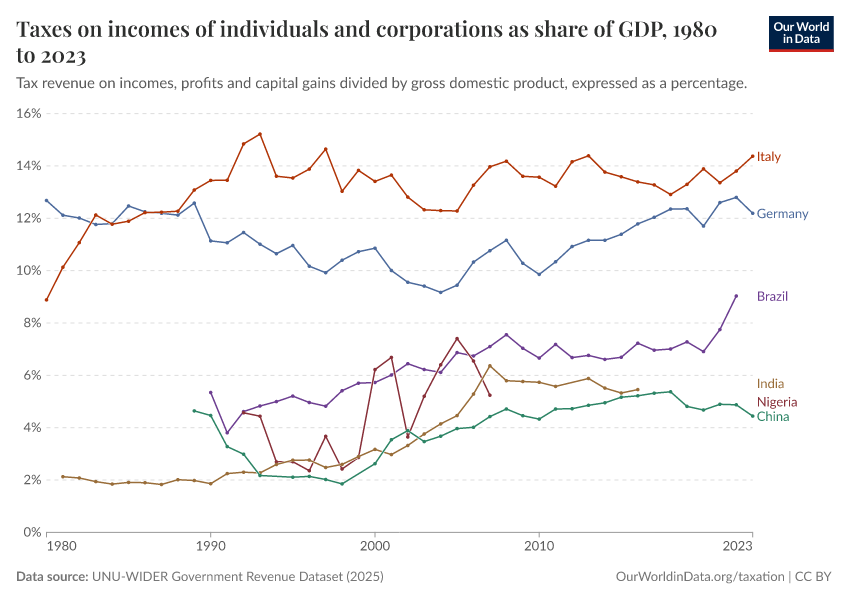 Esteban Ortiz-Ospina and Max Roser (2016) - “Taxation” Published online at OurWorldinData.org. Retrieved from: 'https://bespoke-viz-urb.owid.pages.dev/taxation' [Online Resource]BibTeX citation
