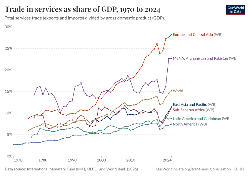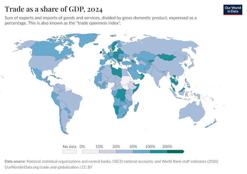 Esteban Ortiz-Ospina, Bertha Rohenkohl, Veronika Samborska, Simon Van Teutem, Diana Beltekian, and Max Roser (2018) - “Trade and Globalization” Published online at OurWorldinData.org. Retrieved from: 'https://bespoke-viz-urb.owid.pages.dev/trade-and-globalization' [Online Resource]BibTeX citation