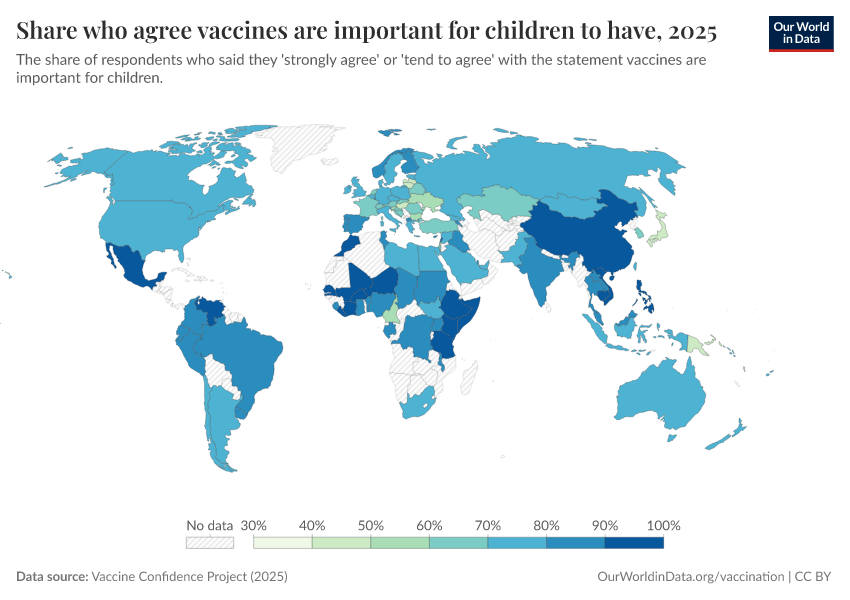 Vaccine skepticism plays a role in some places, but surveys show vaccine confidence is generally high in many lower-income countries. In contrast, some higher-income countries, where coverage is higher, report lower public trust in vaccines.