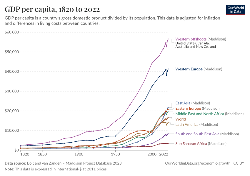 Jutta Bolt and Jan Luiten van Zanden (2021) — The GDP data in the chart is taken from The Long View on Economic Growth: New Estimates of GDP, How Was Life? Volume II: New Perspectives on Well-being and Global Inequality since 1820, OECD Publishing, Paris, https://doi.org/10.1787/3d96efc5-en.