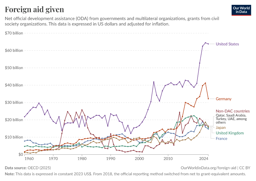 Simon van Teutem and Pablo Arriagada (2025) - “What is foreign aid? How “Official Development Assistance” is measured” Published online at OurWorldinData.org. Retrieved from: 'https://bespoke-viz-urb.owid.pages.dev:8789/20260304-094028/what-is-foreign-aid.html' [Online Resource] (archived on March 4, 2026).BibTeX citation