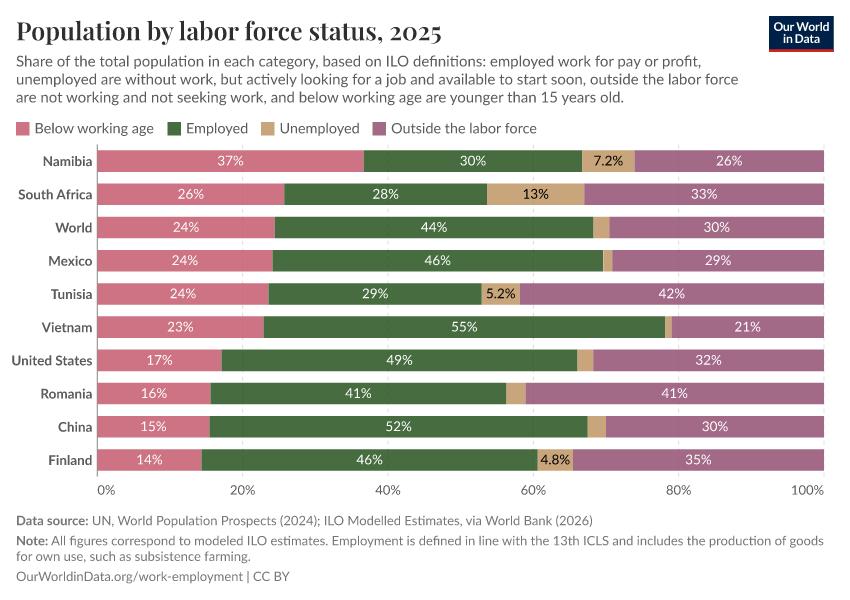 Bertha Rohenkohl, Pablo Arriagada, and Esteban Ortiz-Ospina (2026) - “Work and Employment” Published online at OurWorldinData.org. Retrieved from: 'https://bespoke-viz-urb.owid.pages.dev/work-employment' [Online Resource]BibTeX citation
